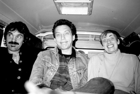 1987 - EXEMPLARISCHE ANTWORTEN. Tournee für die FRIEDENSLISTE (Bundestagswahl 1987). Bernd Köhler, Hans Reffert und Barbara Lahr // Foto: Urte Göbel